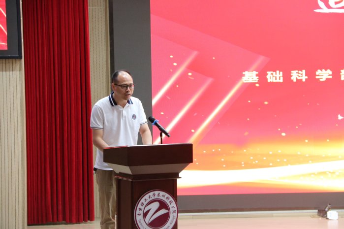 基础科学部周海林代表全体老师进行发言。周海林老师在此次会议中表达了自己对新生的殷切期望,希望各位新生能够建立良好的学习习惯,在基础科学部这个充满智力挑战、高度创新的集体中不断探索,实现自我价值,成就美好人生。